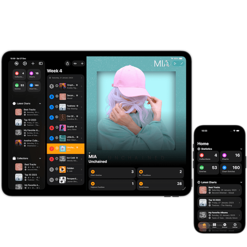 In the new year focus hopefully will be on the improvement of the search functionality for the app. The plan is to make the search a more central part of the app, serving as the main interface to find new music, pick existing entries not part of your chart, or query your collections for specifics about an artist or album.