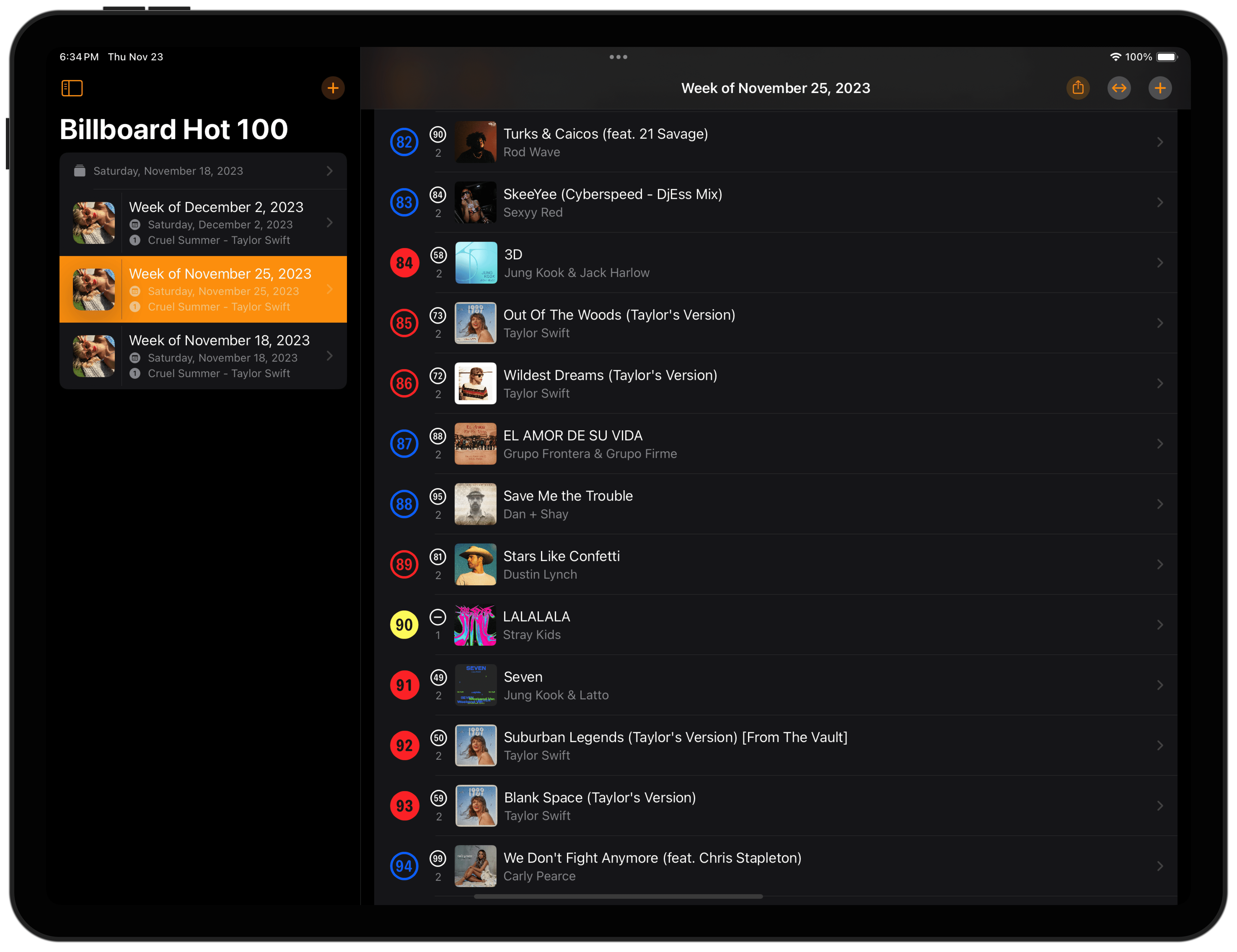 I finally managed to get all custom SF Symbols for 51 - 100 working in the app. From an app development perspective there was not that much additionally I had to change to support 100 entries in a chart. So, after a long and tedious Adobe Illustrator / SF Symbols app collaboration the app is ready to allow you to create your own version of the Billboard Hot 100….