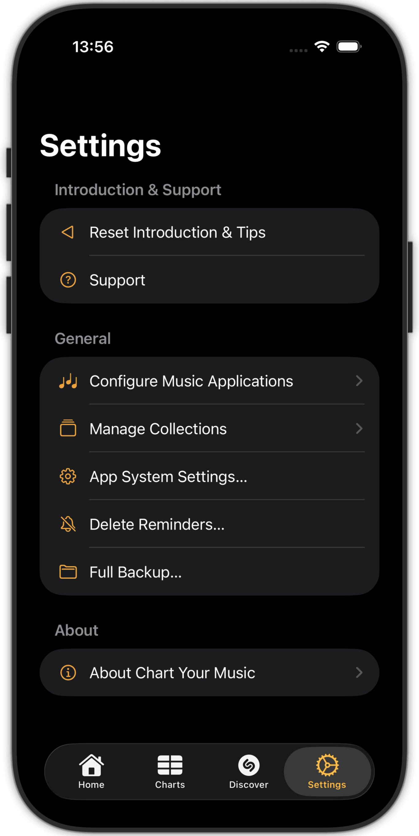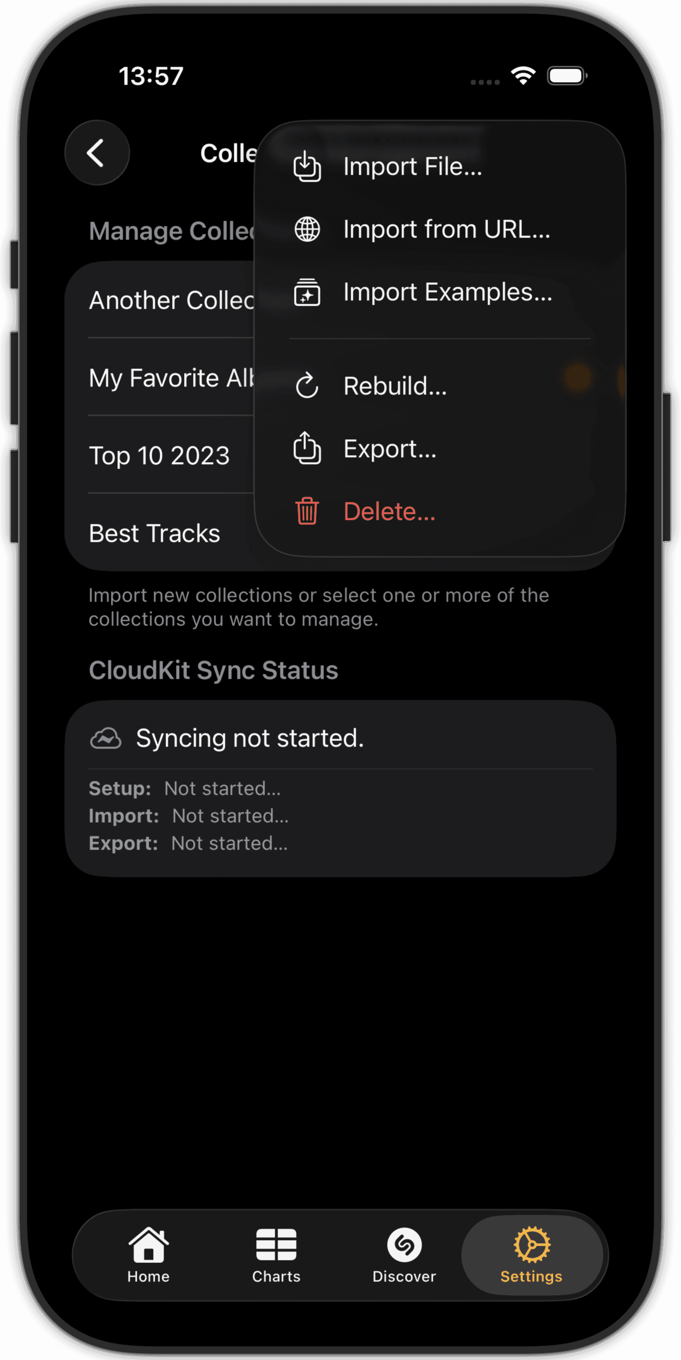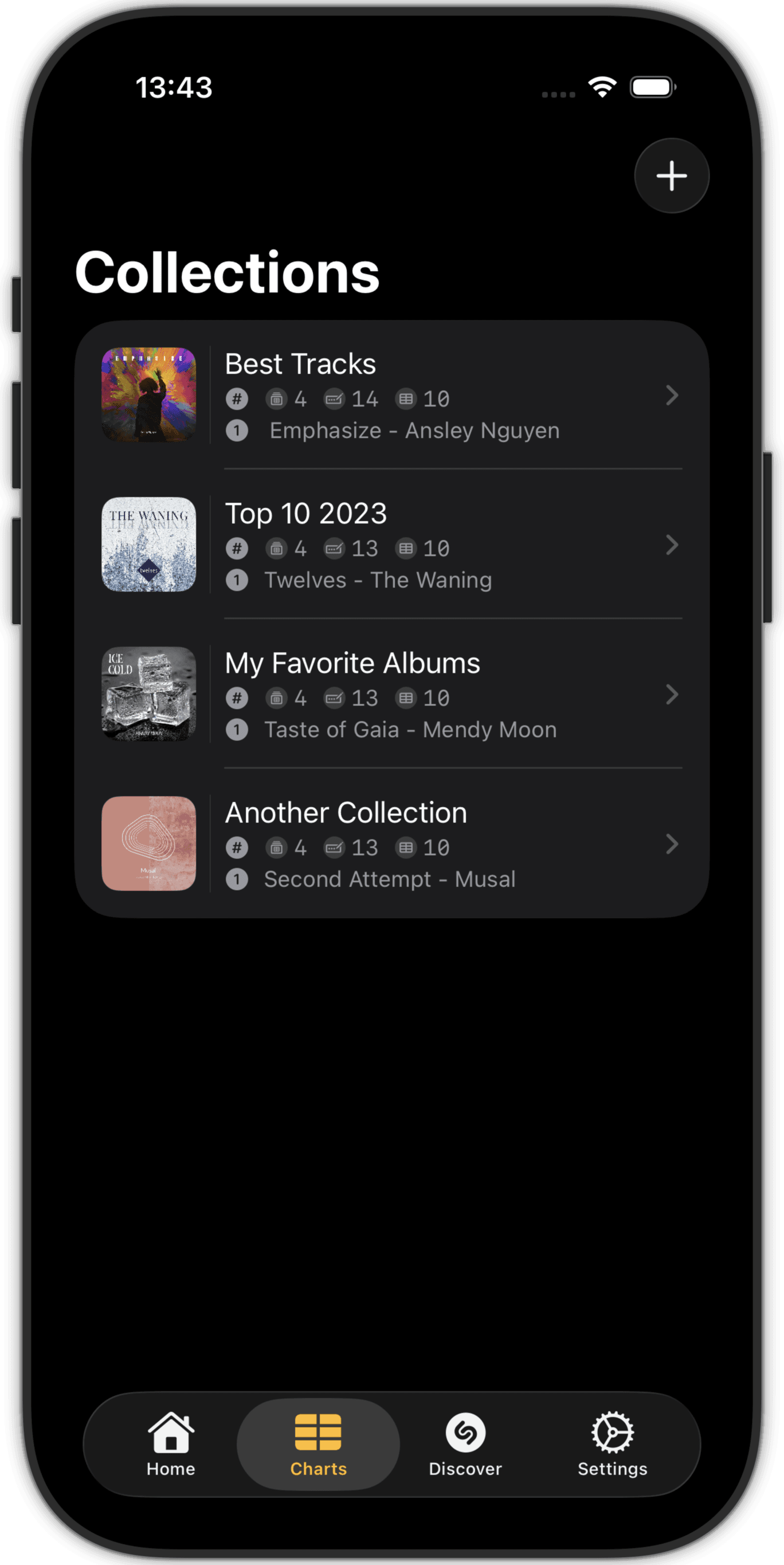 Navigate into your collections to explore the charts and the entries (songs, albums).