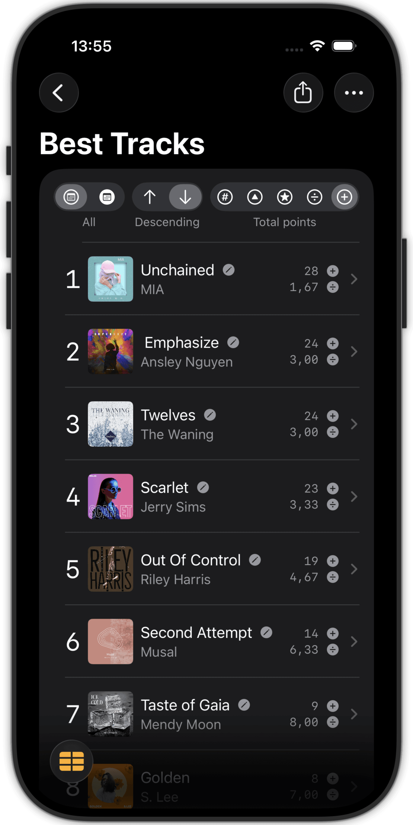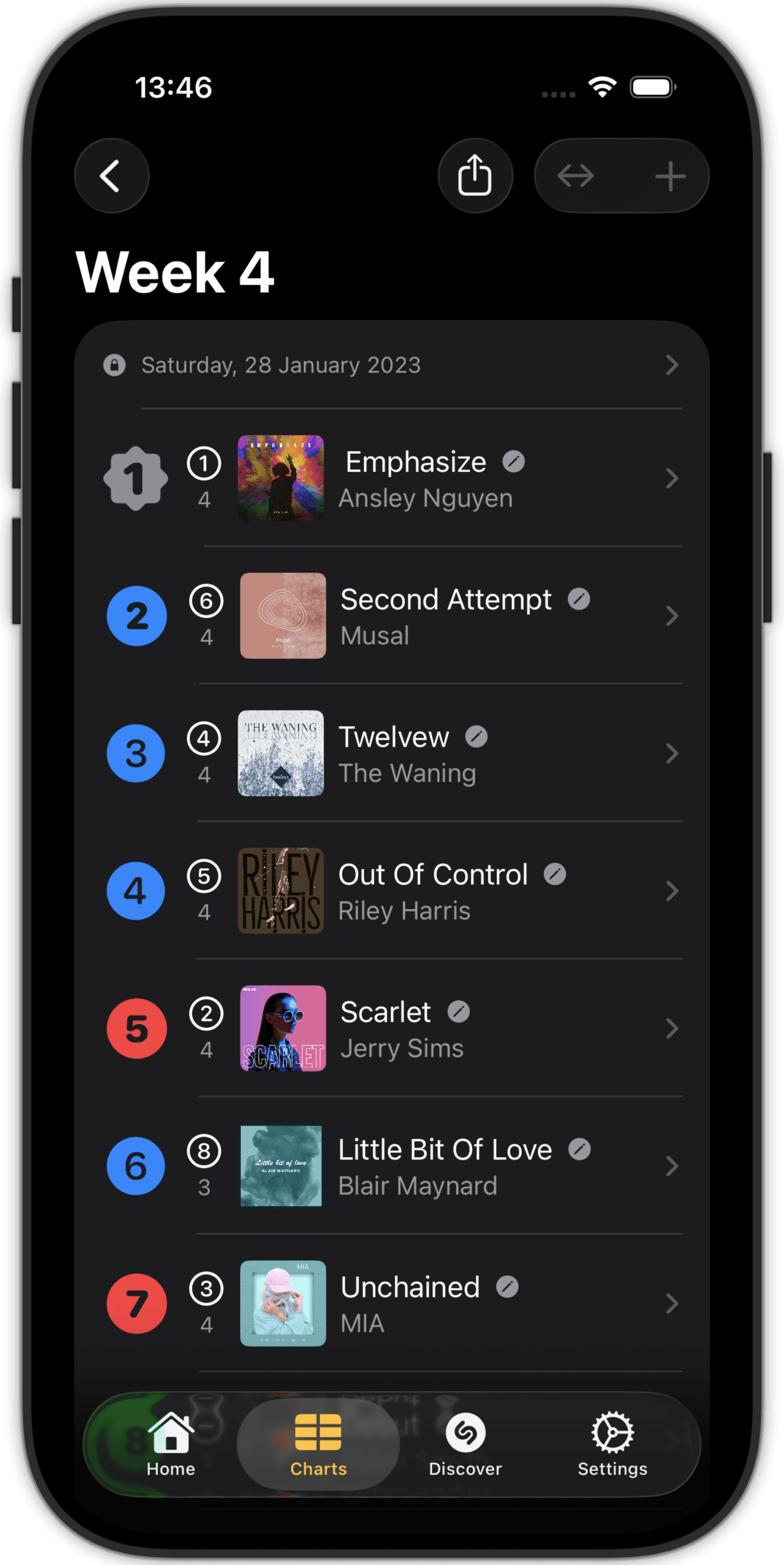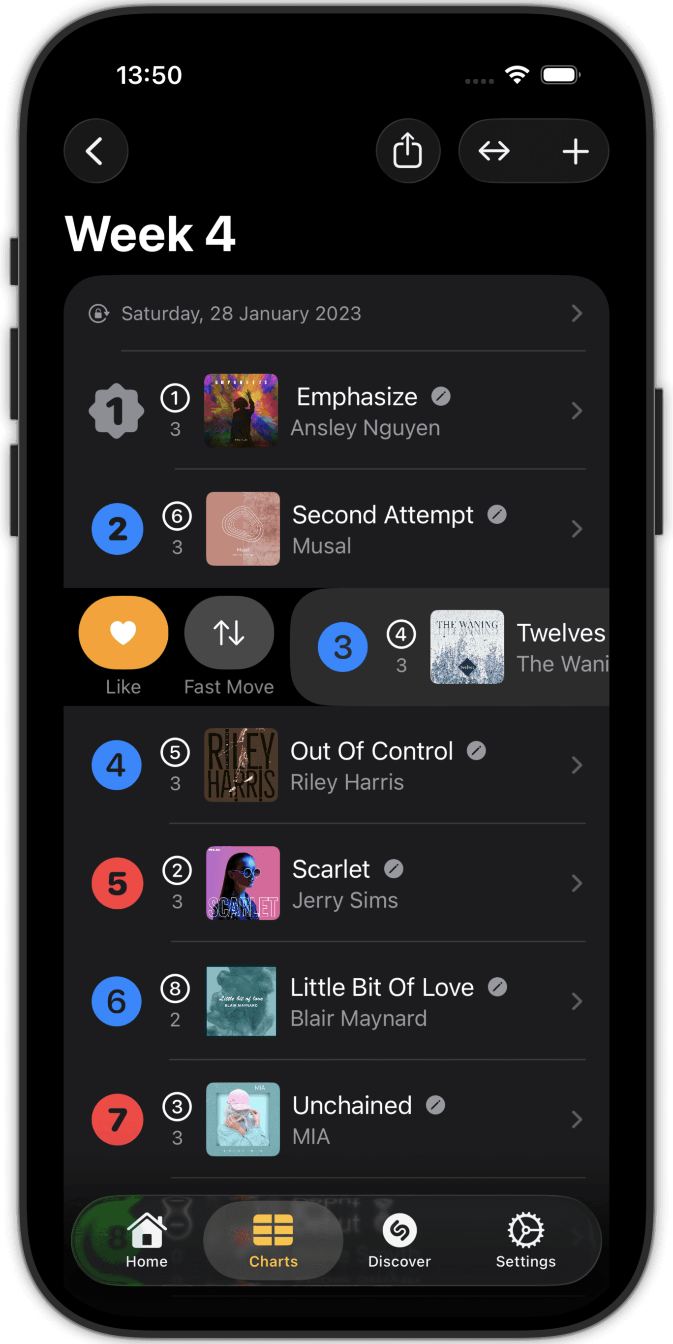 Rank entries in your chart in line with your musical taste.