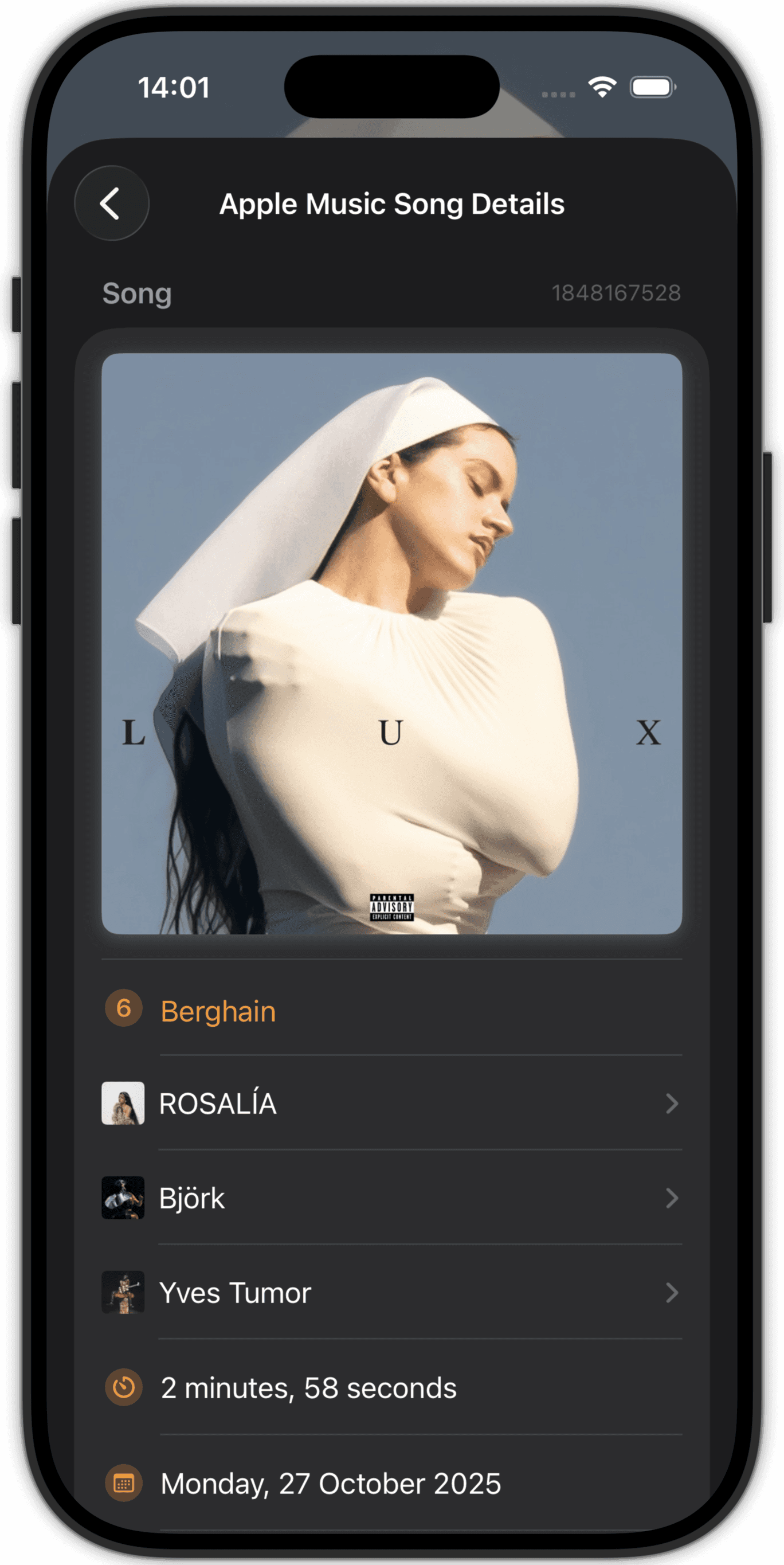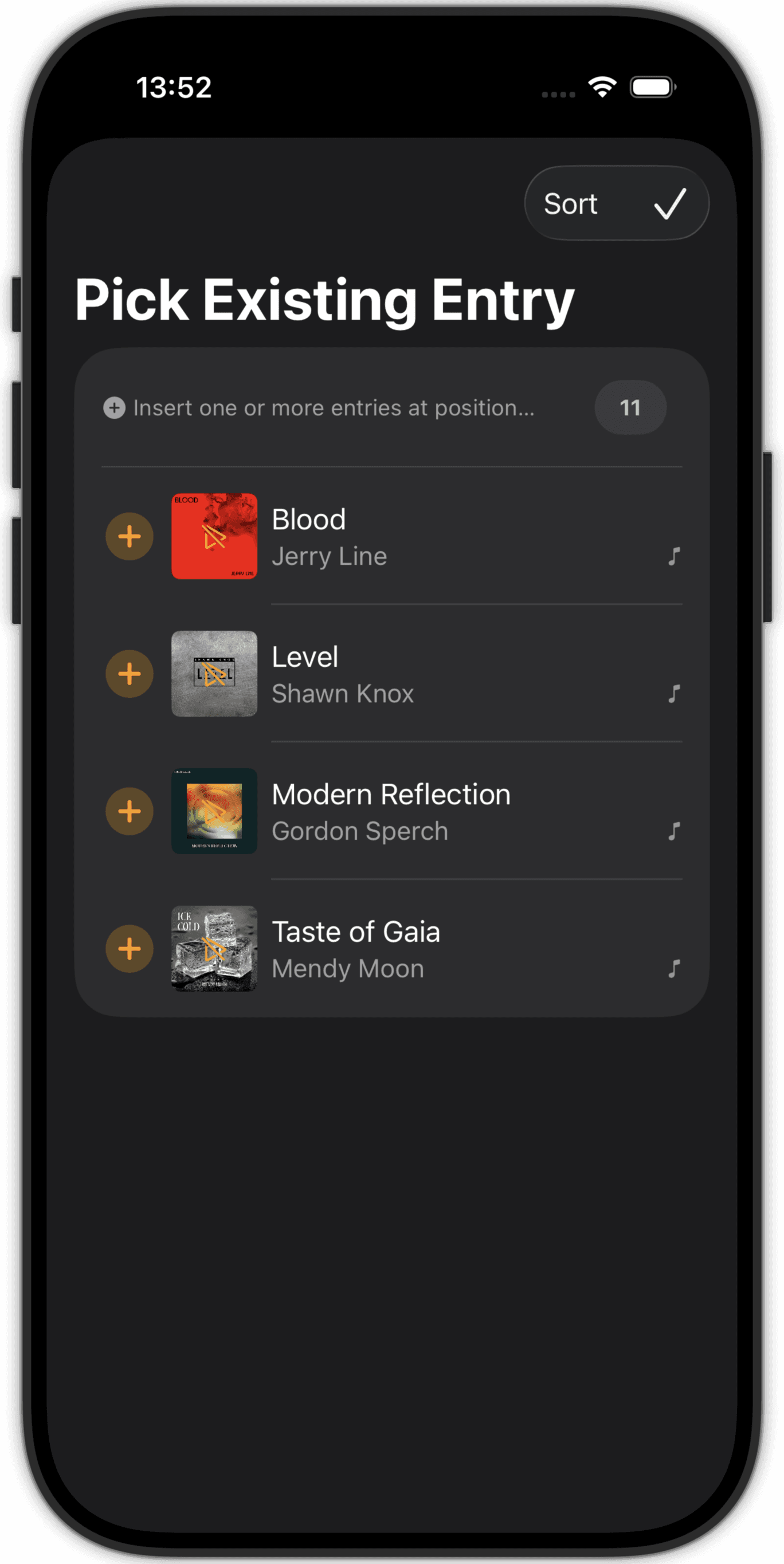 Pick existing entries or search for tracks, songs, albums using Apple Music or Spotify.