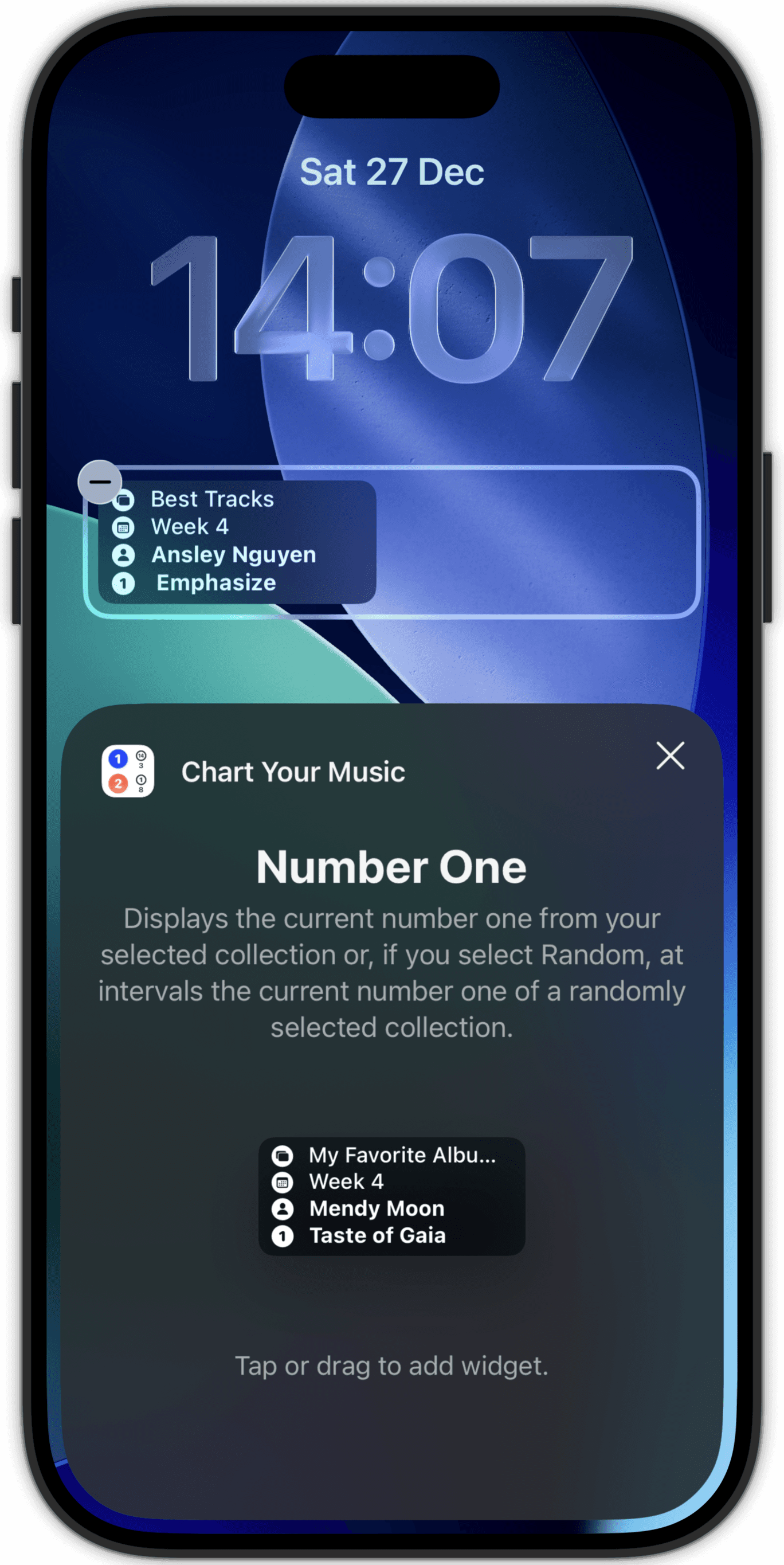 Place one or more Number One widgets on any of your home or app screens.